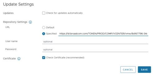 I would rather not comment on things that are happening at Broadcom, they made a change again and didn’t tell anyone anywhere, so the default URL setting for the VCSA update is no longer functional and you have to change it to https://dl.broadcom.com/TOKEN/PROD/COMP/VCENTER/vmw/8d167796-34d5-4899-be0a-6daade4005a3/8.0.3.00600/